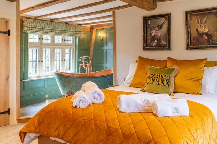 L'histoire de ce manoir entouré de douves classé Grade II* remonte à 1284. Situé à la périphérie du village de Stebbing, dans l'Essex, aux couleurs pastel, son squelette historique, composé de poutres robustes et de couloirs délicieusement tordus, tisse désormais une cavalcade de caractère de chambres magnifiquement décorées, chacune unique.